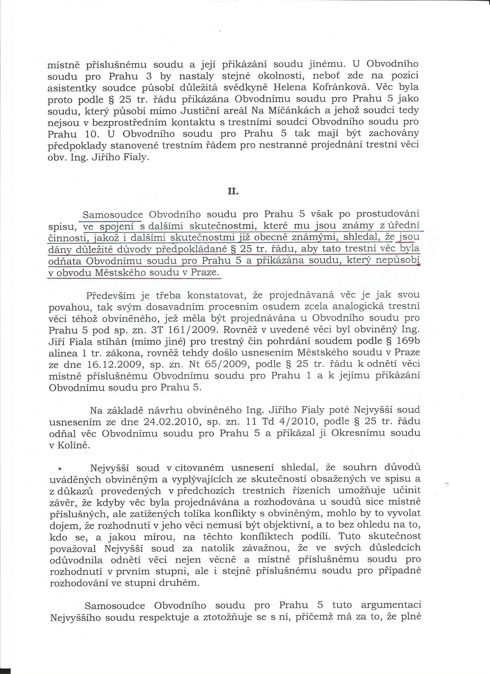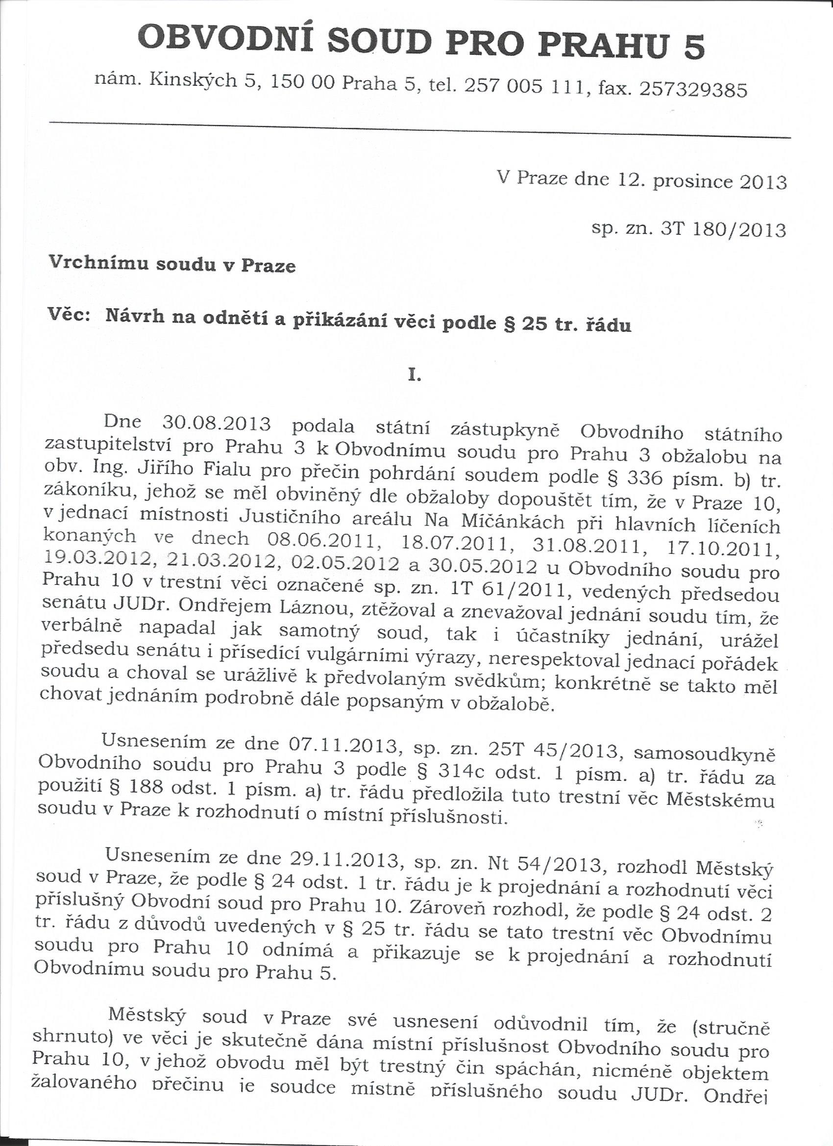 A opět - jako tehdy - protože mu nechybí ani přirozená inteligence, ani právní cit - vydal následující usnesení : Stručně shrnuto : Trhněte si nohou, co bysme si pálili prsty my - hodíme to opět přes Vltavu, ať si tam s ním poradí, mají bohatší zkušenosti než my tady.