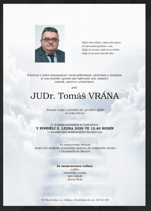 JUDr. Tomáš Vrána | Pohřební služba Misericordia
