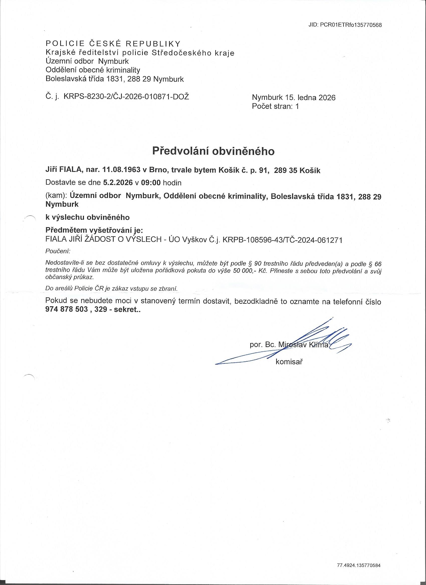 Poučuji tímto policii v NB, že na zmatečné dokumenty se hledí, jakoby nikdy nebyly vydány, takto bude naloženo i s předmětným předvoláním.