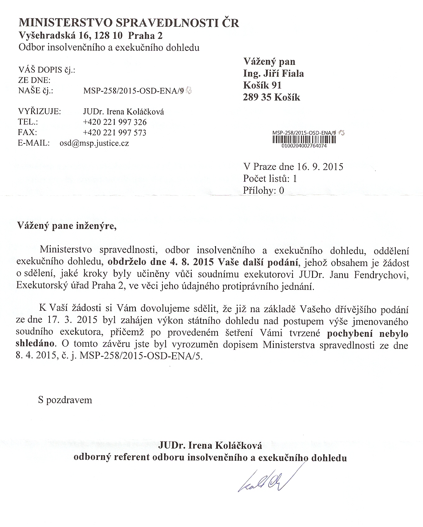 pokud máte chování exekutora (Fendrycha) za "naprosto v pořádku" za