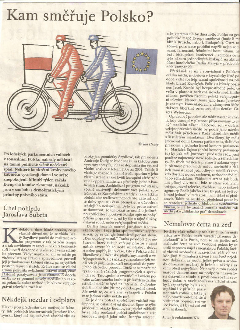 chci se tímto vyjádřit k Vašemu článku v Katolické týdeníku "Kam směřuje Polsko", který - ač částečně přinášejíc jisté pozitivní