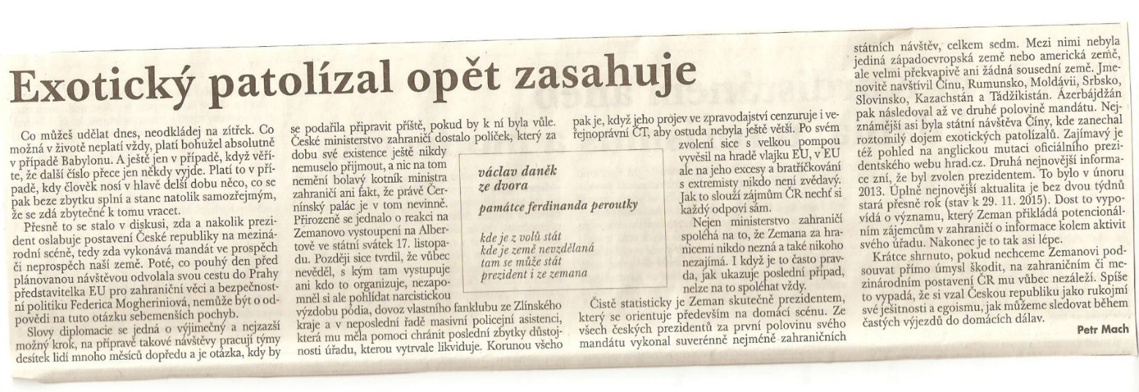 Výše zmíněný a níže uvedený článek pana Macha - evidentně odráží prostředí, ve kterém se pan Mach pohybuje, a které velmi dobře zná. Prostředí úředníků a diplomatů EU, lidí vesměs vzdělaných, sečtělých, znalých jazyků i mezinárodního prostředí. Lidí denně mnoho hodin pracujících s internetem a zvyklých se v něm snadno a pohodlně orientovat. Tedy : Přesný opak toho, v čem je jako ryba ve vodě Miloš Zeman a zejména pak jeho voličská základna.
