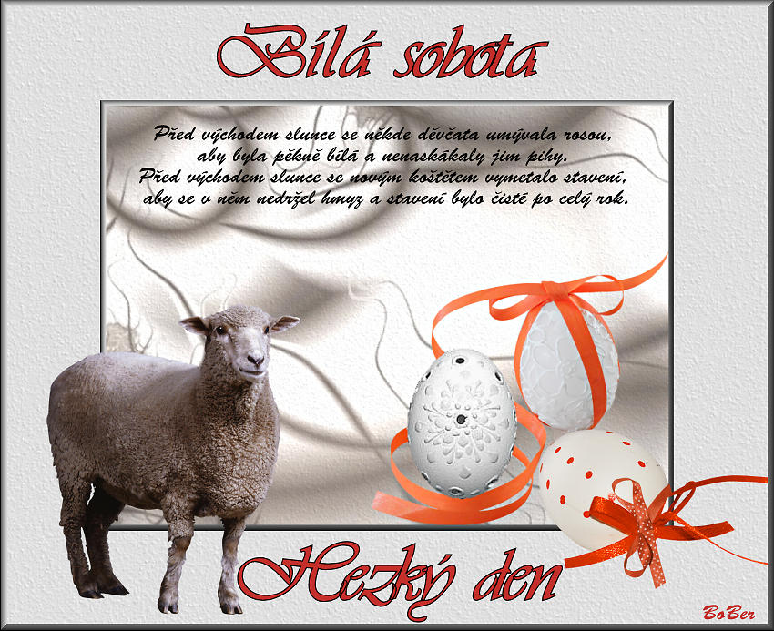 I Tobě samozřejmě hezké Velikonoce, v rámci možností příjemné prožití svátků a statečné srdce.