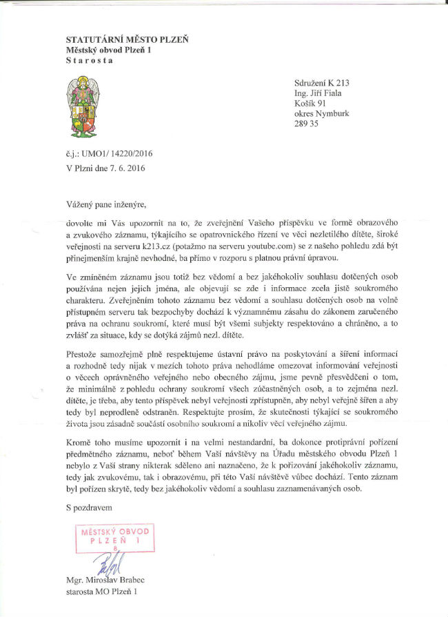 A když už jsme se do té Plzně - po měsíci - zase vypravili, tak jsme samozřejmě nemohli nechat stranou ani státní zastupitelství (Plzeň - město, kde s námi hovořila tentokráte magistra Zelená - ovšem jenom po telefonu) - a samozřejmě také úřady města, které nám poslaly neméně skandální odpověď.
