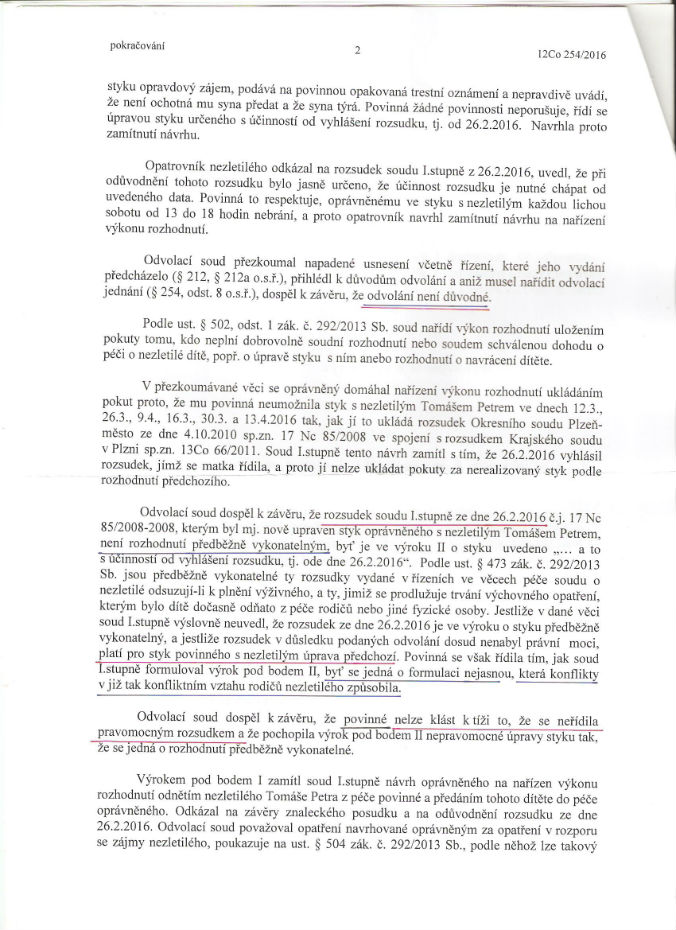 Nám se zase nelíbí úřad nabádající matku k vědomému porušování vykonatelného rozsudku...