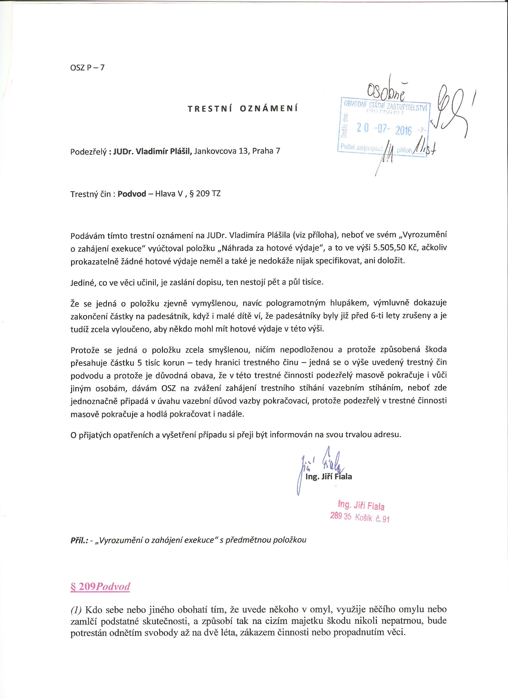 Všem, kterým "pan doktor" účtoval něco podobného - a dosud na něj trestní oznámení pro podvod nepodali - vřele doporučujeme, aby tak neprodleně - třeba podle připojeného vzoru - učinili...