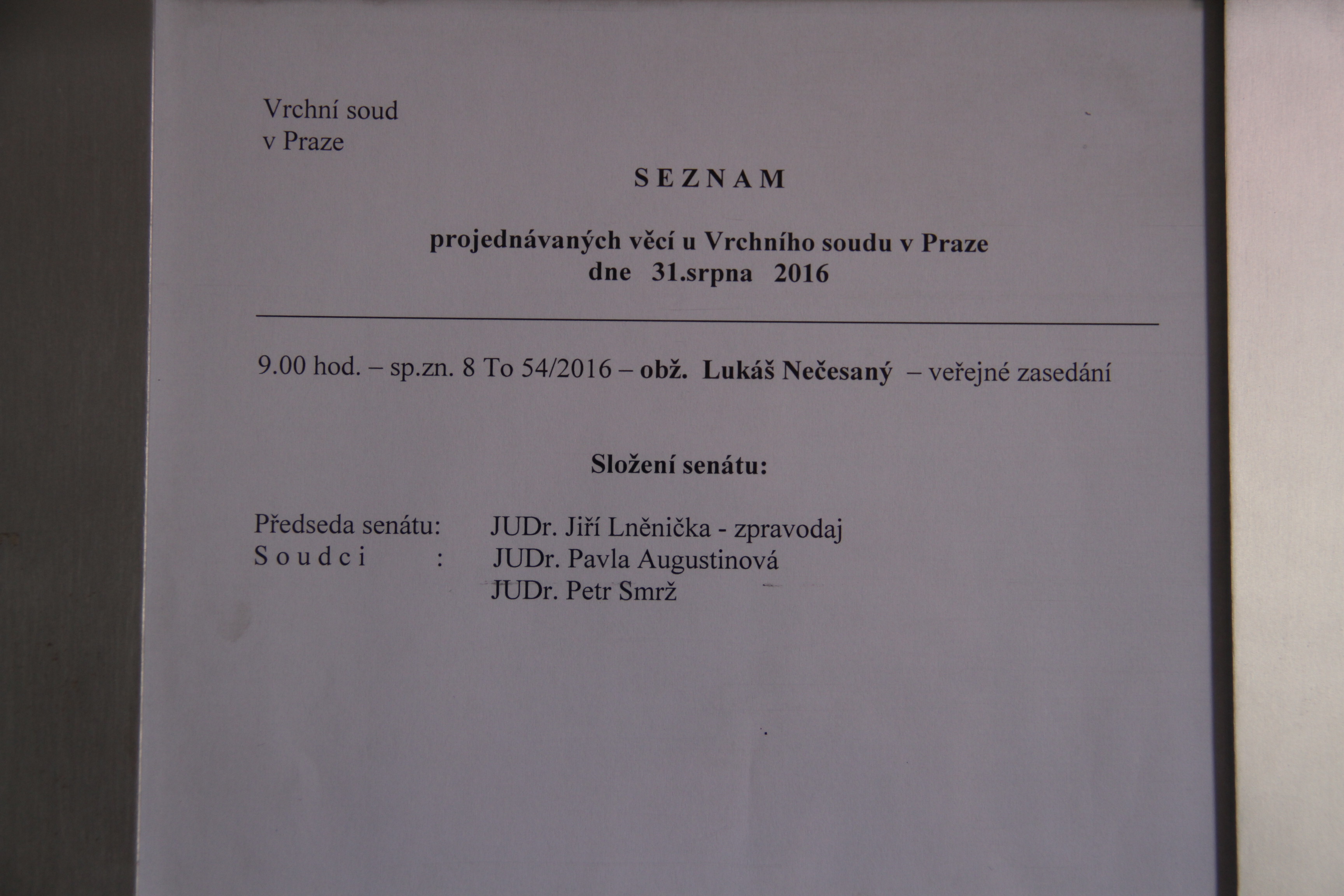 Do detailů zacházet nebudu, z odvolacího jednání naprosto jednoznačně vyplynulo, že Lukáš Nečesaný je nevinný, vina mu nebyla prokázána, ani nemohla být - a můj osobní dojem, že pokud tam jsou nějaké nepřímé důkazy, tak všechny v jeho prospěch, včetně jeho chování dnes i po celou dobu trestního stíhání.