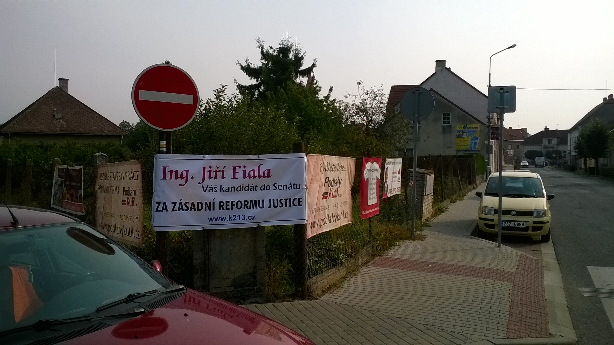 Baner u benzinové pumpy v Bobnicích - i s kandidátem... (5.10. 2016).