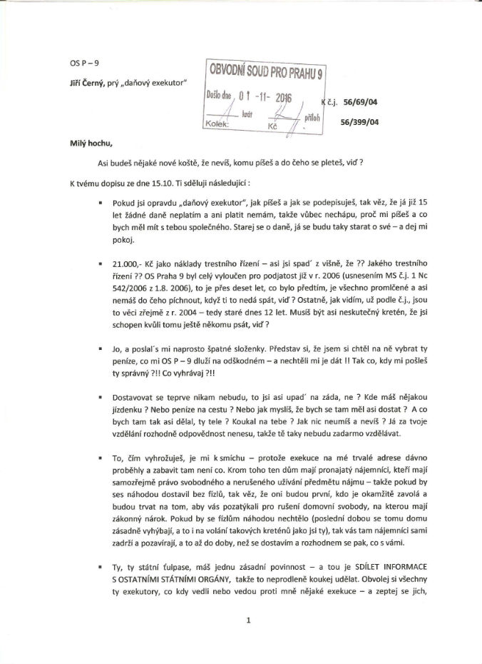 Četl jsem váš (patřičný) dopis pro finančního exekutora… Ten si ho zajisté za rámeček nedá!