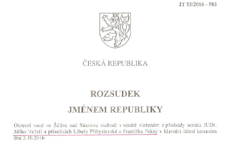 společnosti, jak je popsáno v následujícím případu ze Žďáru (nikoliv