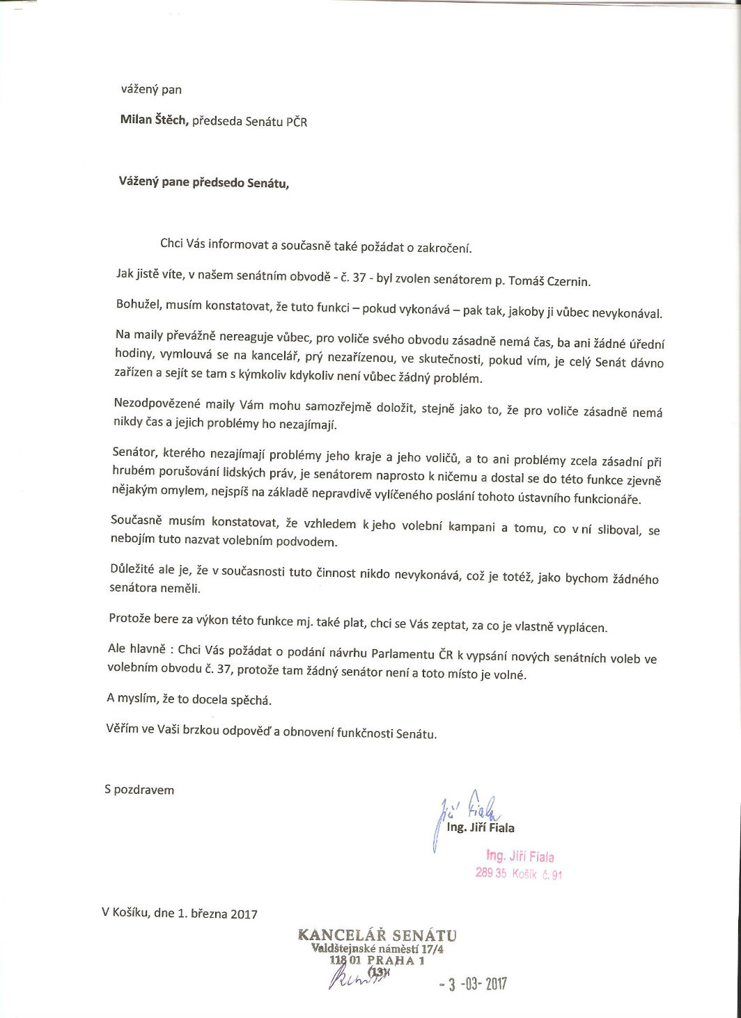 Věřím ve Vaši brzkou odpověď a obnovení funkčnosti Senátu.