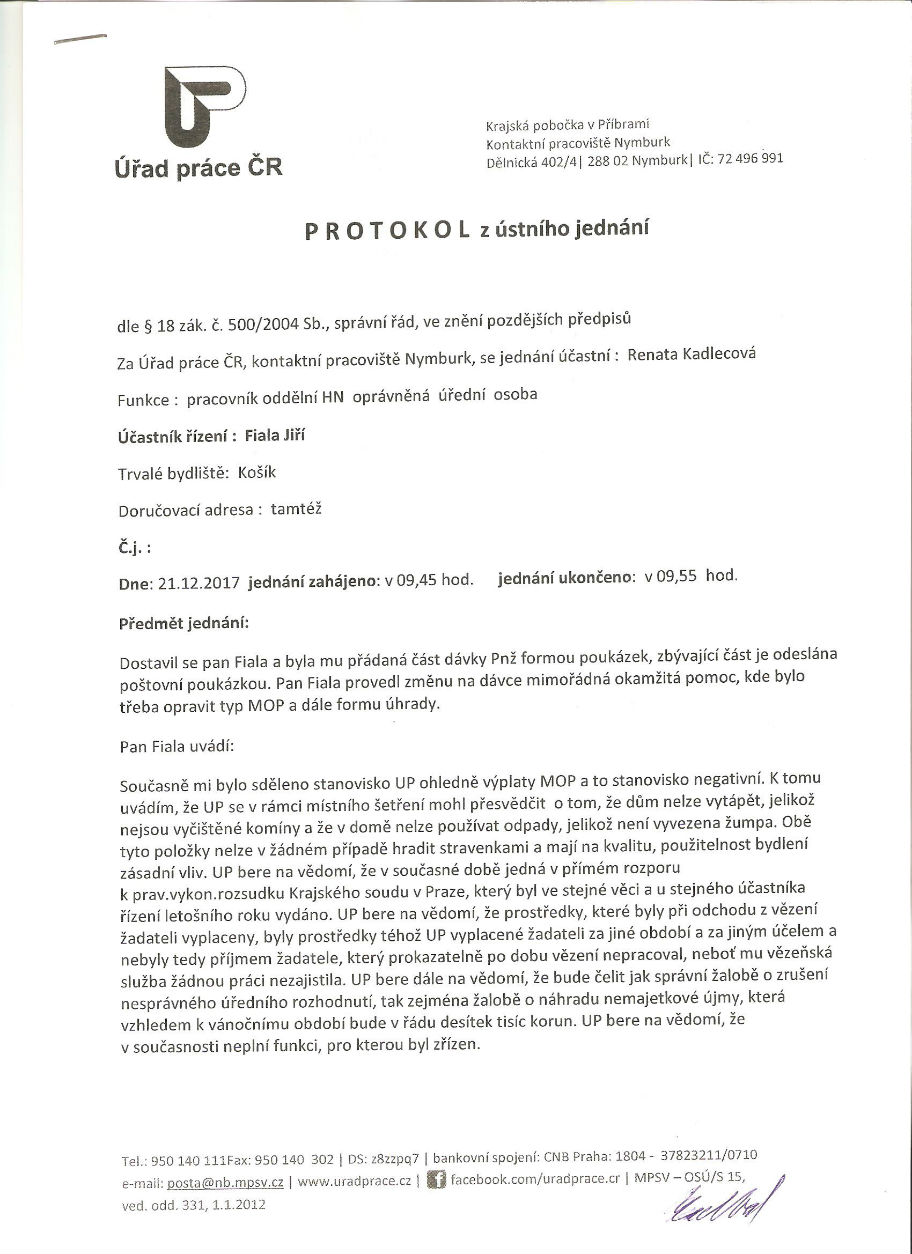 A jedna z prvních dozajista bude i z ÚP v Nymburce. S dotazem, proč ignorují vykonatelný rozsudek krajského soudu, který byl - právě pro ně - závazně vydán.