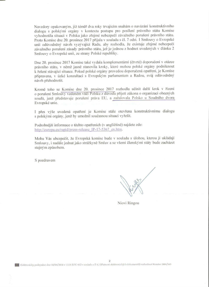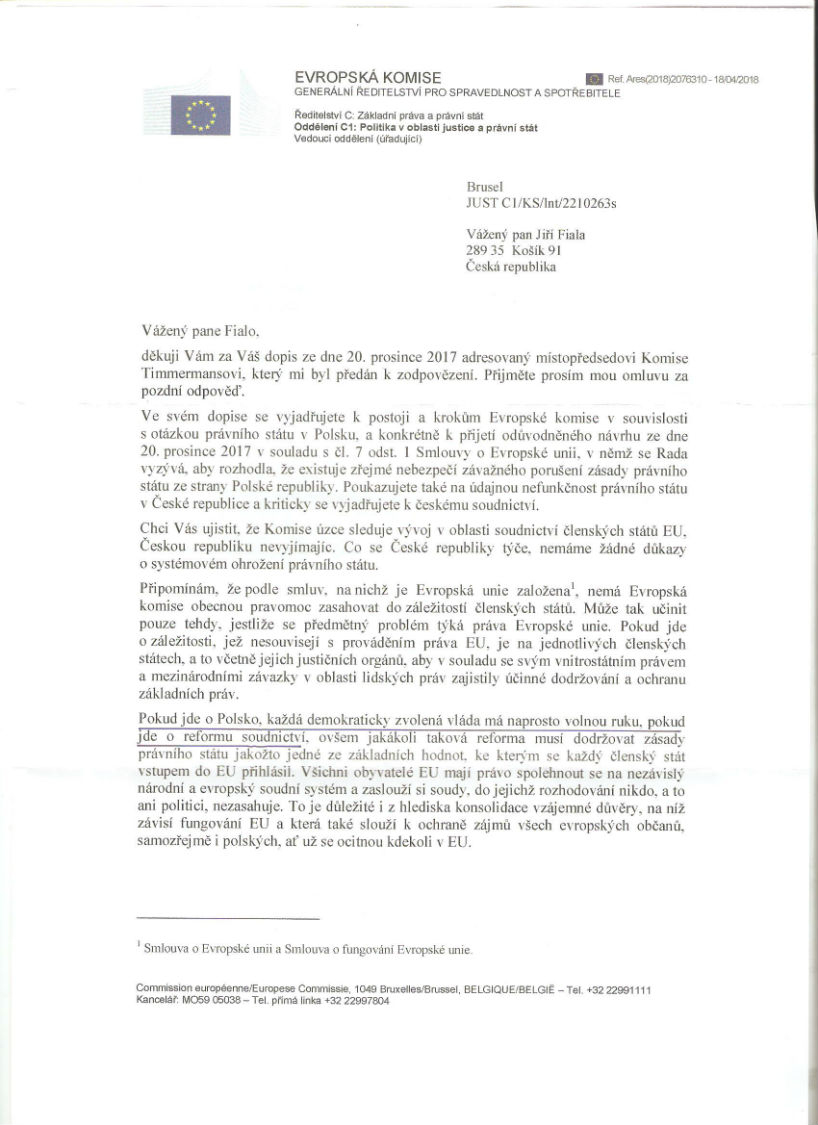 Pan Timmermans najednou odpovídá, že EK nemá pravomoc zasahovat do záležitostí členských států. Doufám, že mi redakce stránek dovolí představit také tuto korespondenci s panem (soudruhem) Timmermansem redakcím polských medií a také příslušným polským politickým představitelům. Protože pan Timmermans tak činí.
