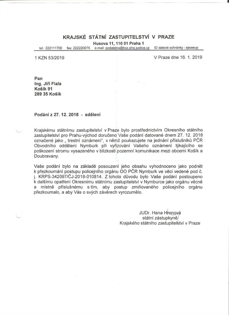 Dotaz ovšem bylo třeba vznésti i na předchozího státního zástupce, aby vysvětlil, jakými podivnými cestami původní oznámení k Hronové, na zcela jiný a věcně naprosto nepříslušný úřad doputovalo... Už poněkud úředněji...