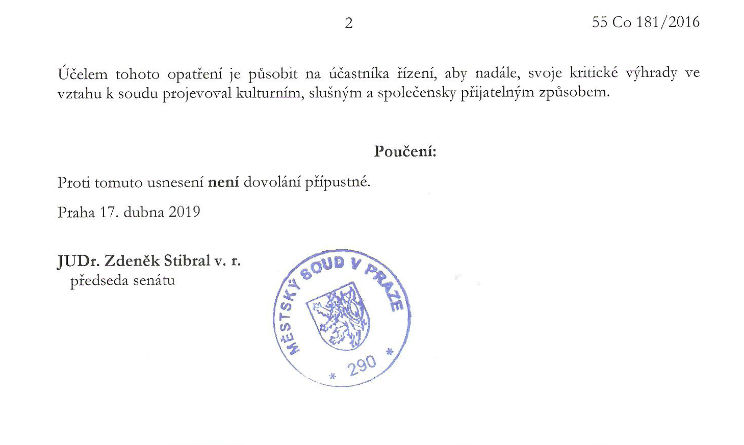 No - a Stibral rozhodnul - jak typické pro tuhle justici, když už nemůže nepohodlné skutečnosti ani zapřít, ani stěžovatele jinak umlčet.