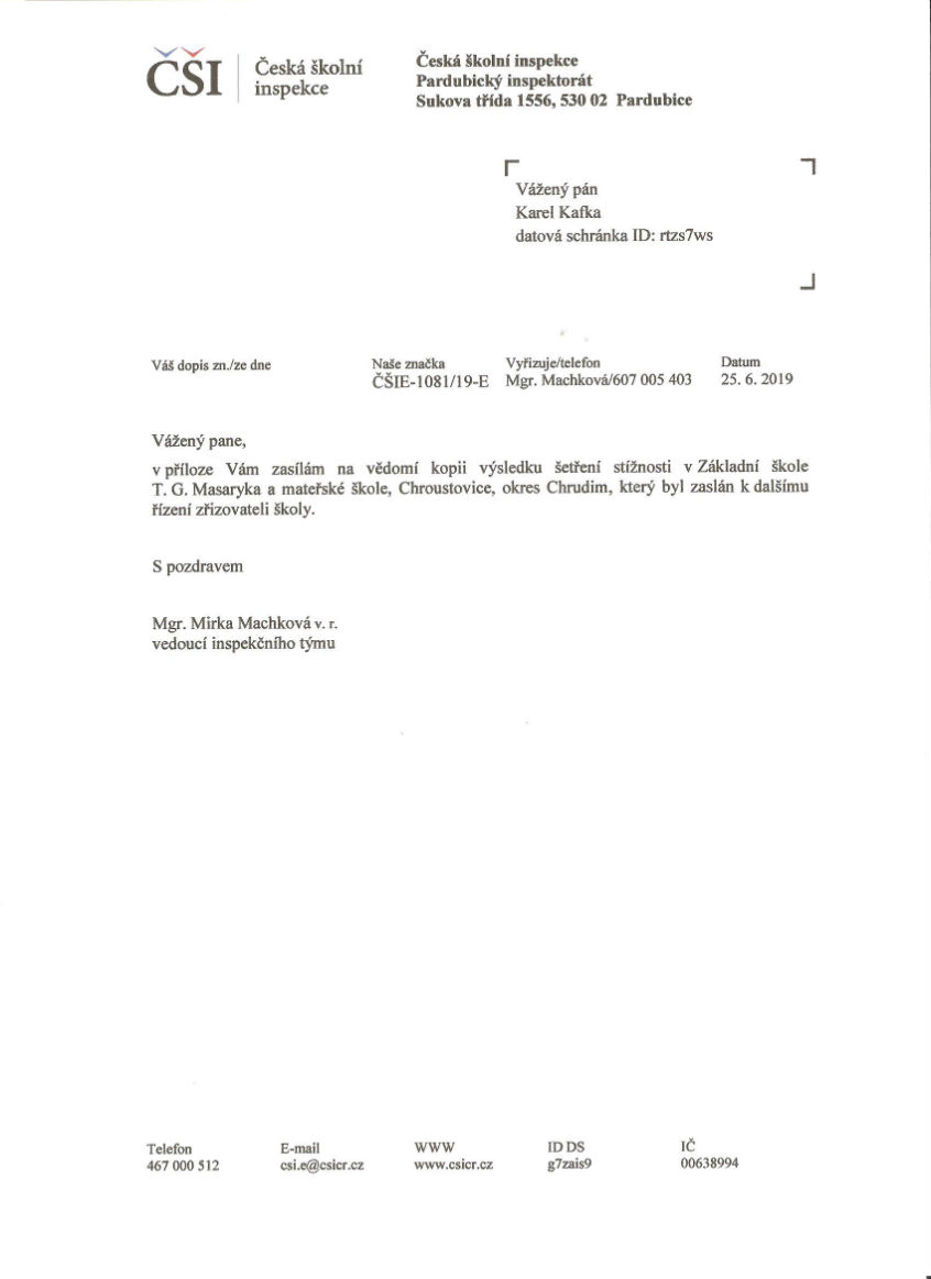 S pozdravem Ing. Milan Chmelař, školní inspektor