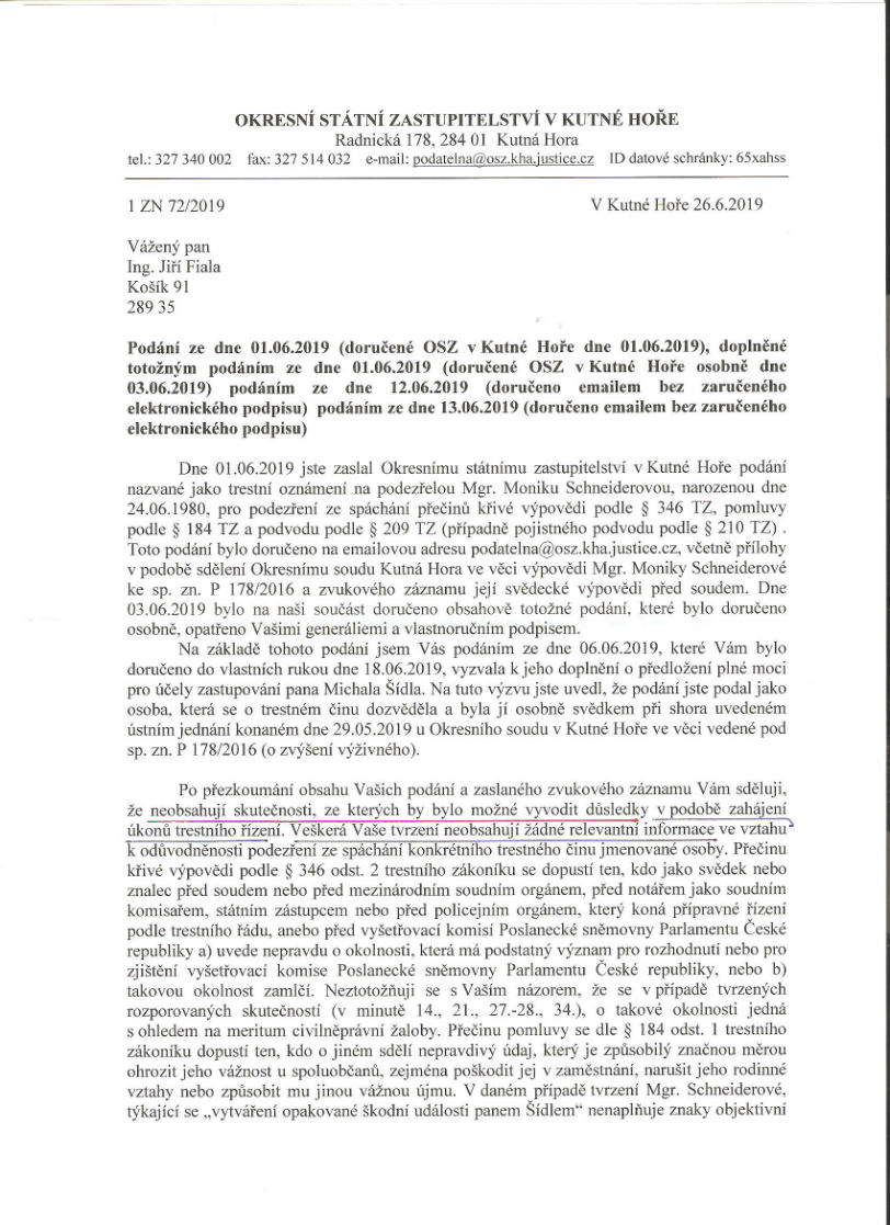Jestliže nespatřujete trestný čin křivé výpovědi ani poté, co je tato výpověď podrobně zadokumentována, popsána a doplněna o příslušné paragrafy, které jí byly přestoupeny, tak zesměšňujete soud, před kterým – po poučení – ke křivé výpovědi došlo a dáváte veřejný návod k tomu, že lhát u soudu je běžnou a samozřejmou., u nás plně akceptovanou praxí, na kterou – poučení, nepoučení – státní zastupitelství dávno jako na samozřejmou přistoupilo a stíhat ji nebude.