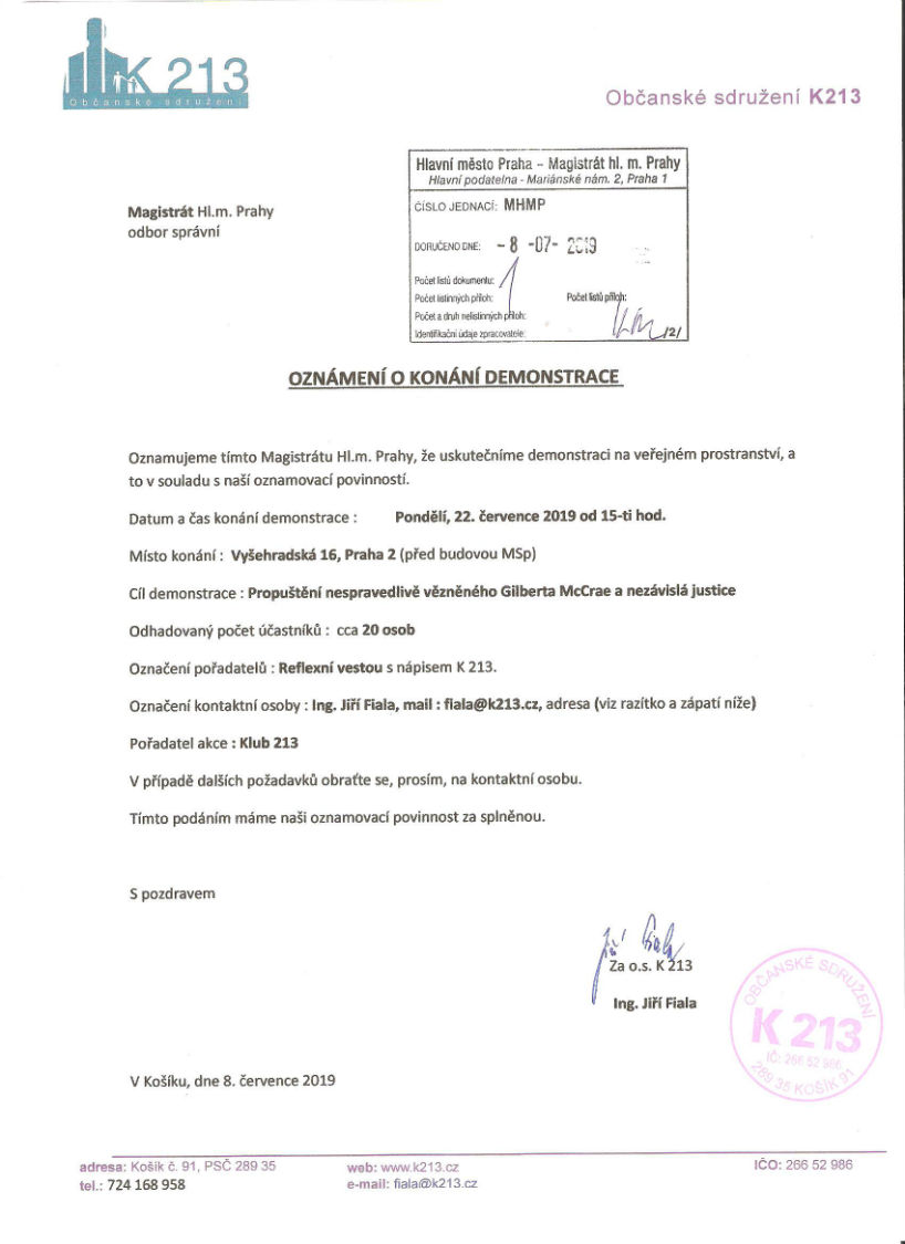 v pondělí, 22. července před budovou MSp, od 15-ti hodin.
