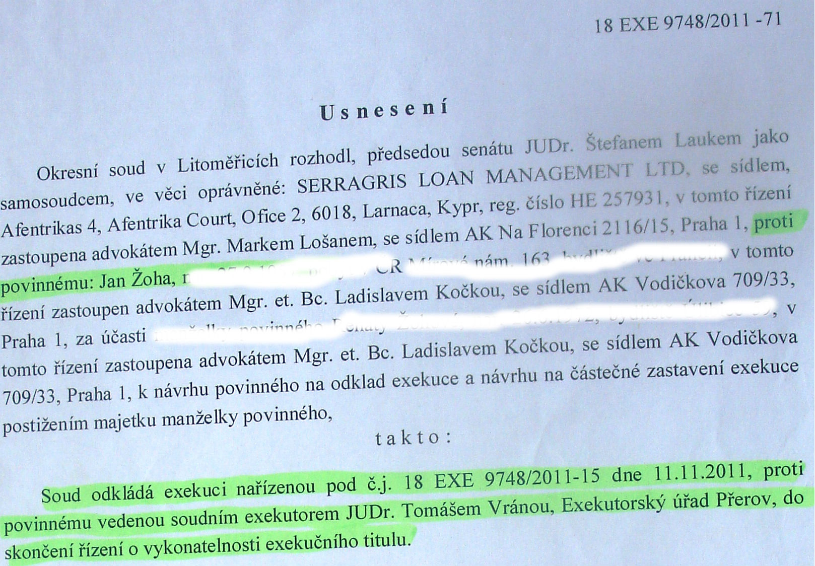 Usnesení o odkladu exekuce do vyjasnění titulu :