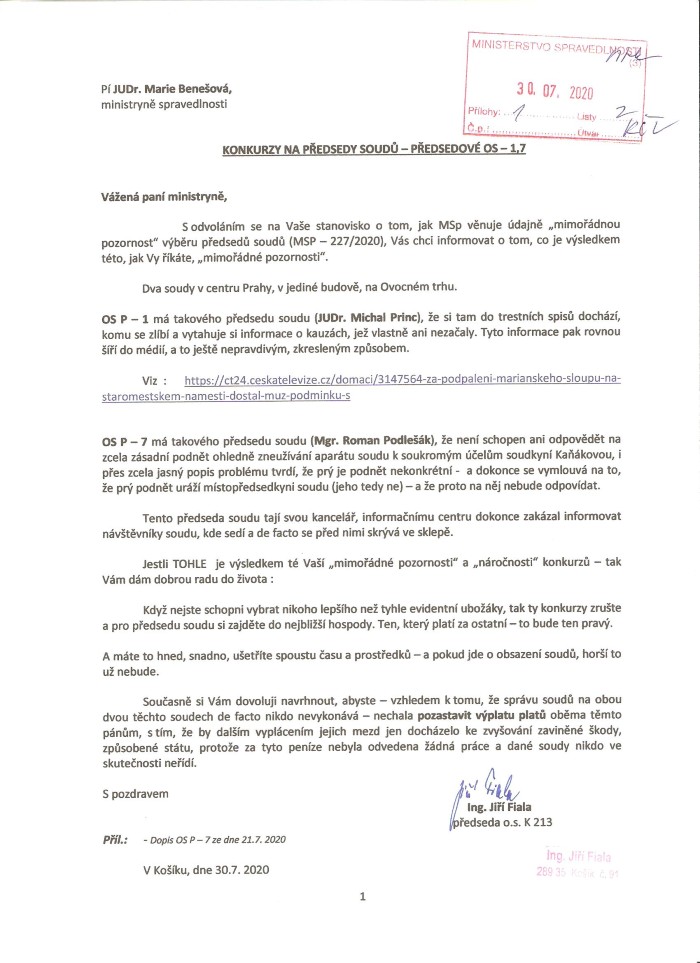 A stejně tak i upozornění Domovnici ( o kvalitách jí organizovaných "konkurzních řízení" na výběr předsedů soudů - i o tom, jak celý výběr značně zjednodušit...) :