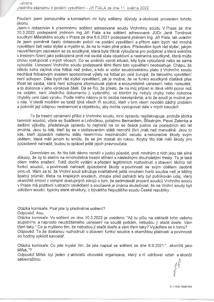 Ovšem skutečnost, že nenechává v klidu samotného předsedu Vrchního soudu, svědčí o stupni obav, které dotyční mají z toho, že by jednou svoje jednání - a hlavně rozhodování - museli skutečně veřejně vysvětlovat...