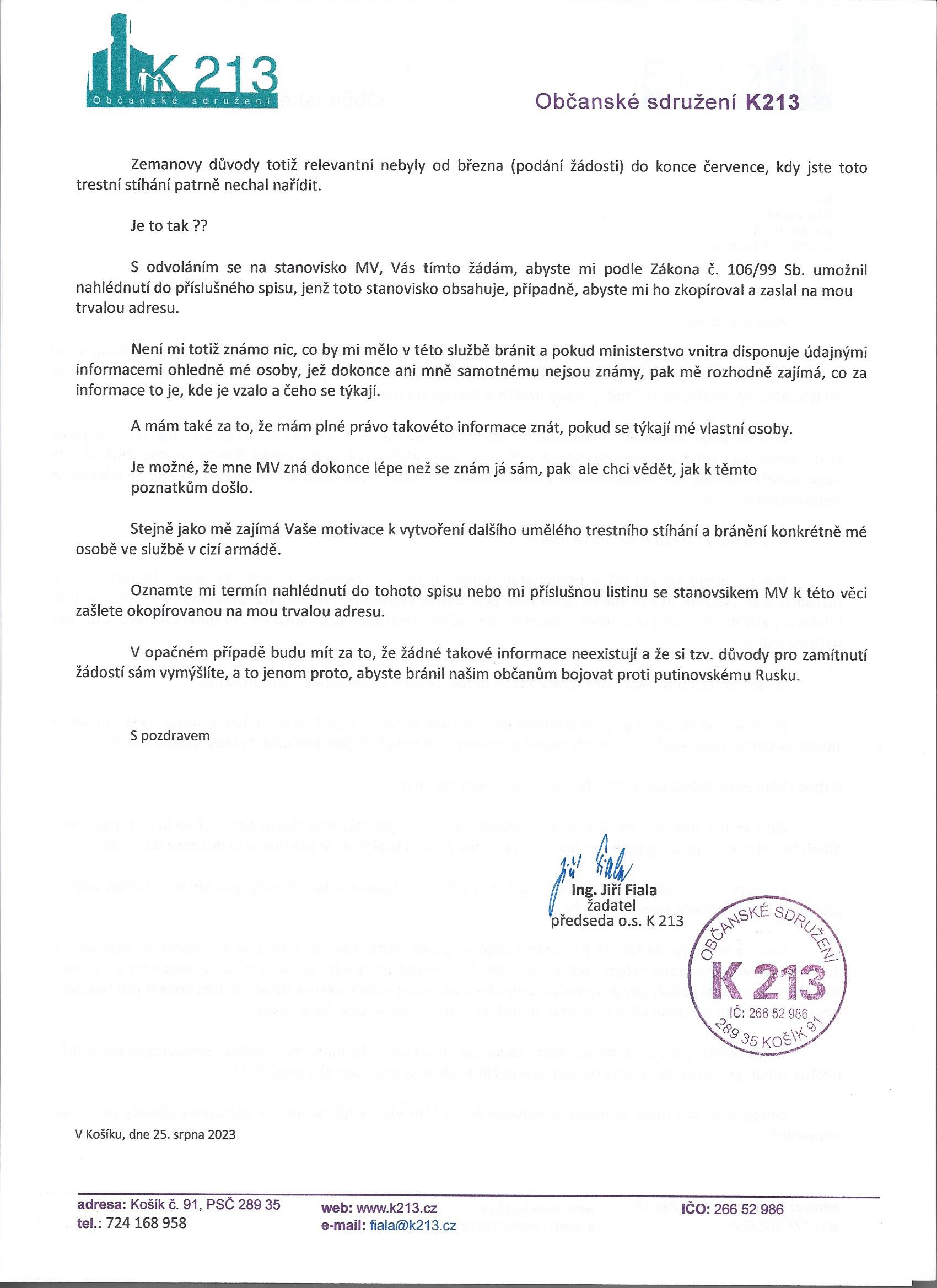 Ve dnech 14.8. – 25.8. 2023 čerpám řádnou dovolenou. V době mé nepřítomnosti mě zastupuje JUDr. Zdeněk Hejhal (This email address is being protected from spambots. You need JavaScript enabled to view it. – v době 14. – 18.8.2023), Pavel Vyhnánek, M.A. (This email address is being protected from spambots. You need JavaScript enabled to view it. – v době 21. – 25.8.2023) na které se můžete s důvěrou obracet. Na Vaše emaily odpovím po svém návratu.