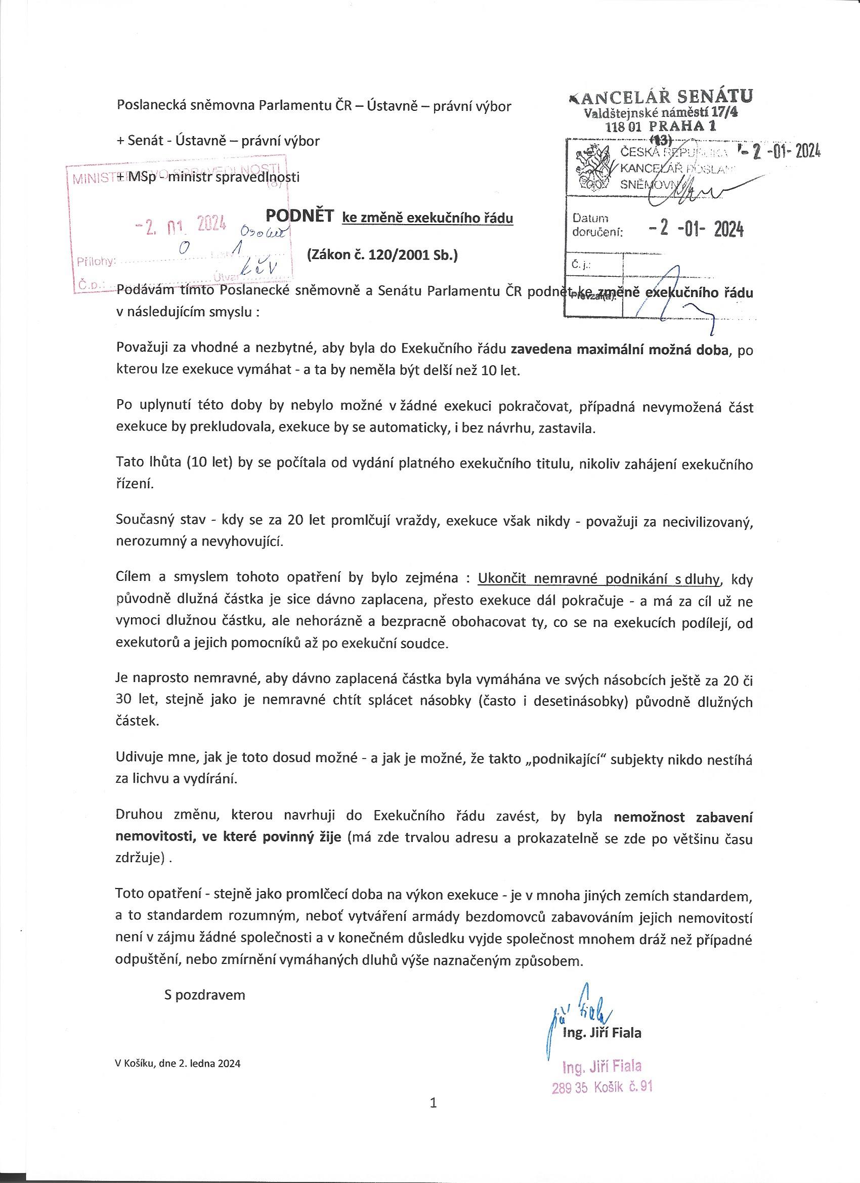 Naše sdružení sice již v historii předneslo několikrát své - zcela zásadní - návrhy na zamezení nejhorších špinavostí, spojených s exekucemi - ale není od věci to zákonodárcům čas od času připomenout, už proto, že ti se mění (a tak i EXE byznys musí stále znovu a znovu uplácet, aby jim tento zlatý rybníček poslanci nevypustili) a jsou stále noví a noví.