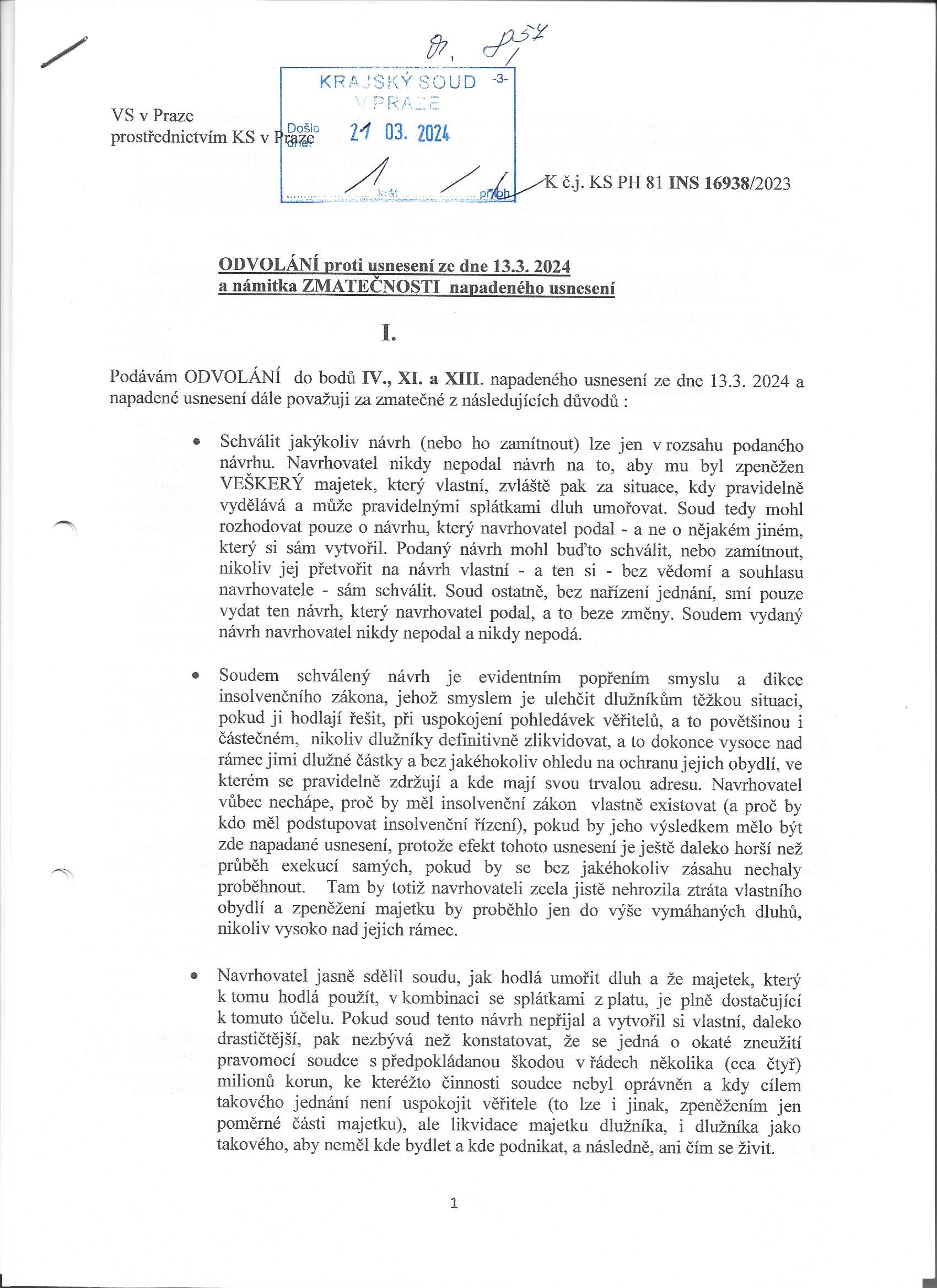 ODVOLÁNÍ do usnesení o "Schválení návrhu". Sice jiného, než jsem já podal - ale - "Schváleno!!" A prý jsem si to sám navrhnul...