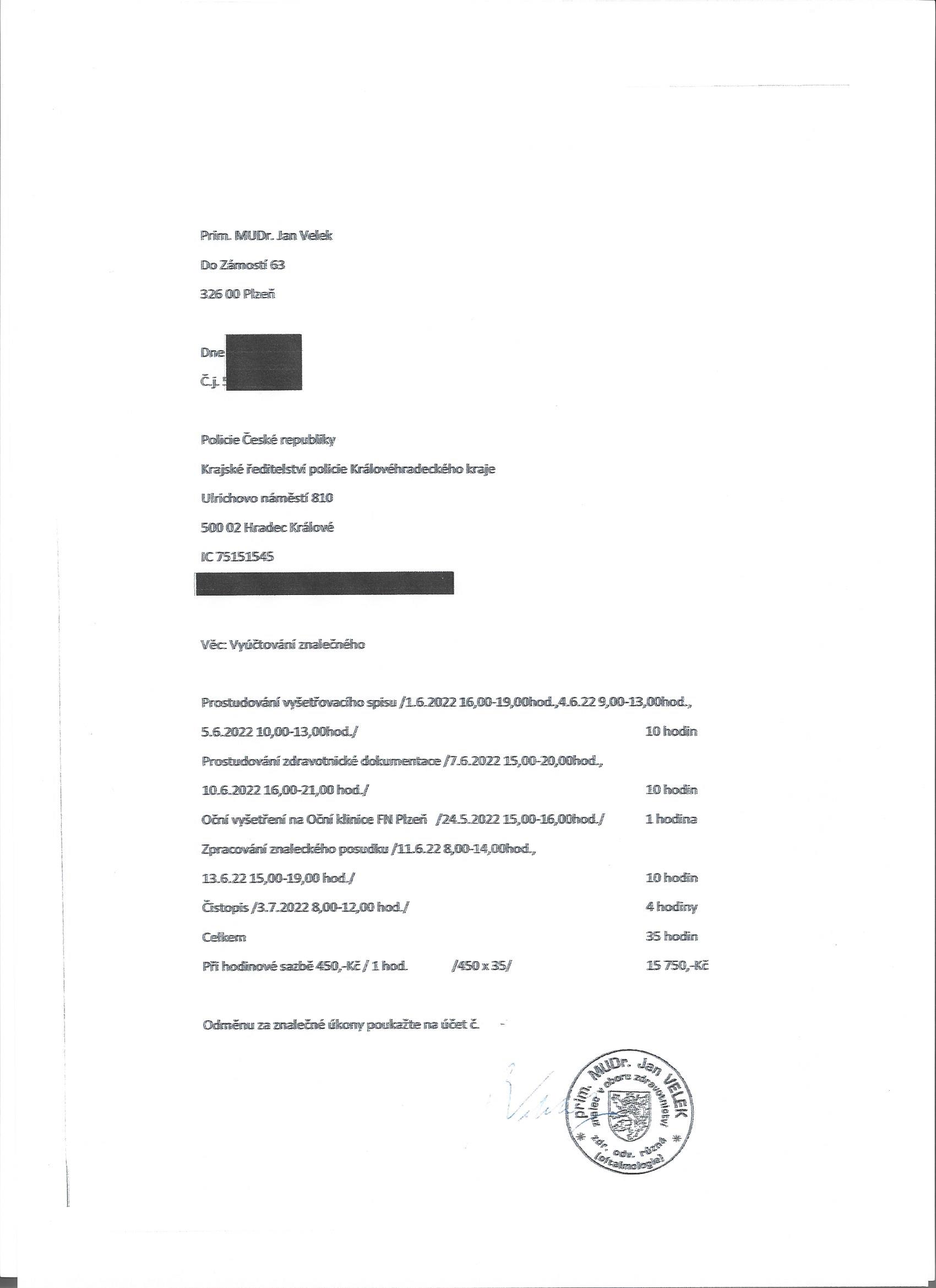Dále se ukázalo, že vyúčtoval 35 hodin studia spisu. Přitom se jaksi prolátlo, že spis vůbec neměl k dispozici. Jak na něm mohl strávit 35 hodin či jak vůbec mohl psát posudek na něco, co ani neviděl, to už zůstává záhadou. Hlavně pro ty, co věří ve spravedlivou a prý nezávislou justici...