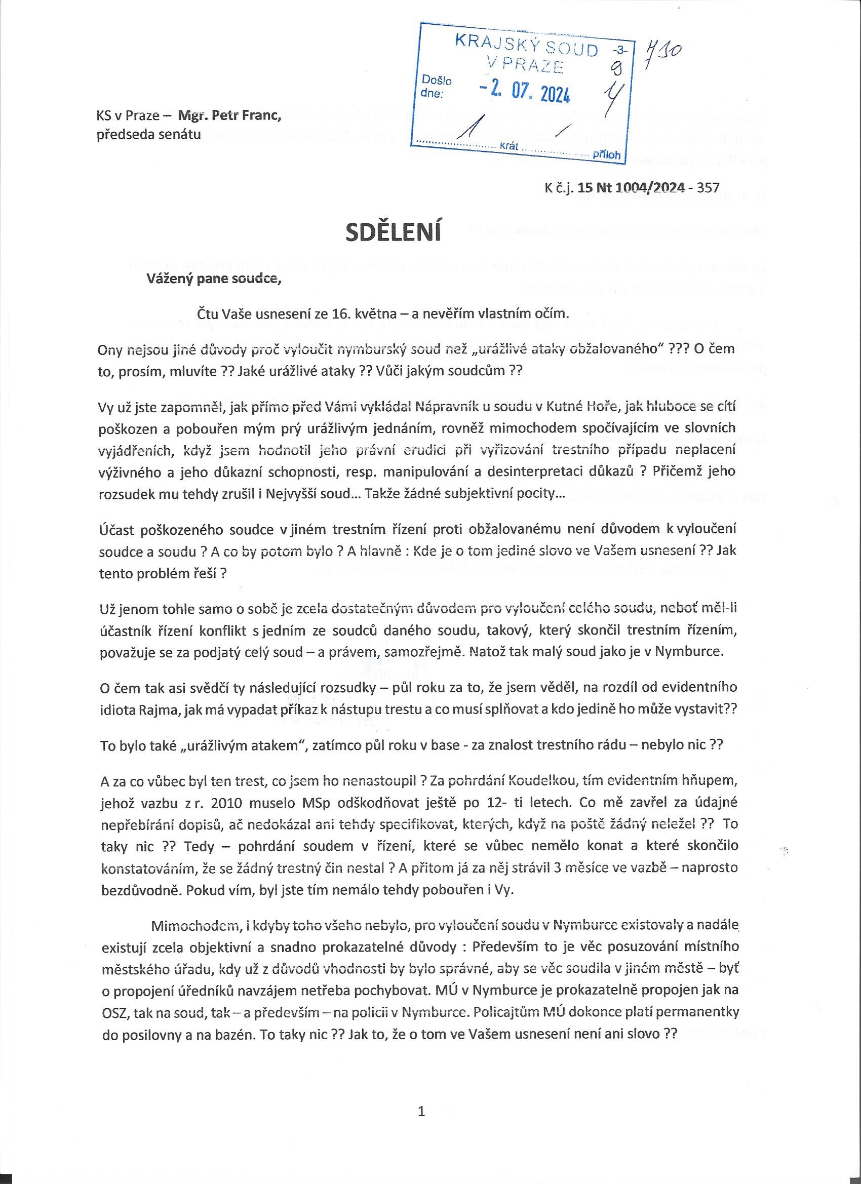 Mimochodem, tady si můžete dobře všimnout, jak skutečně nymburský soud čekal na prázdniny jak na smilování Boží.