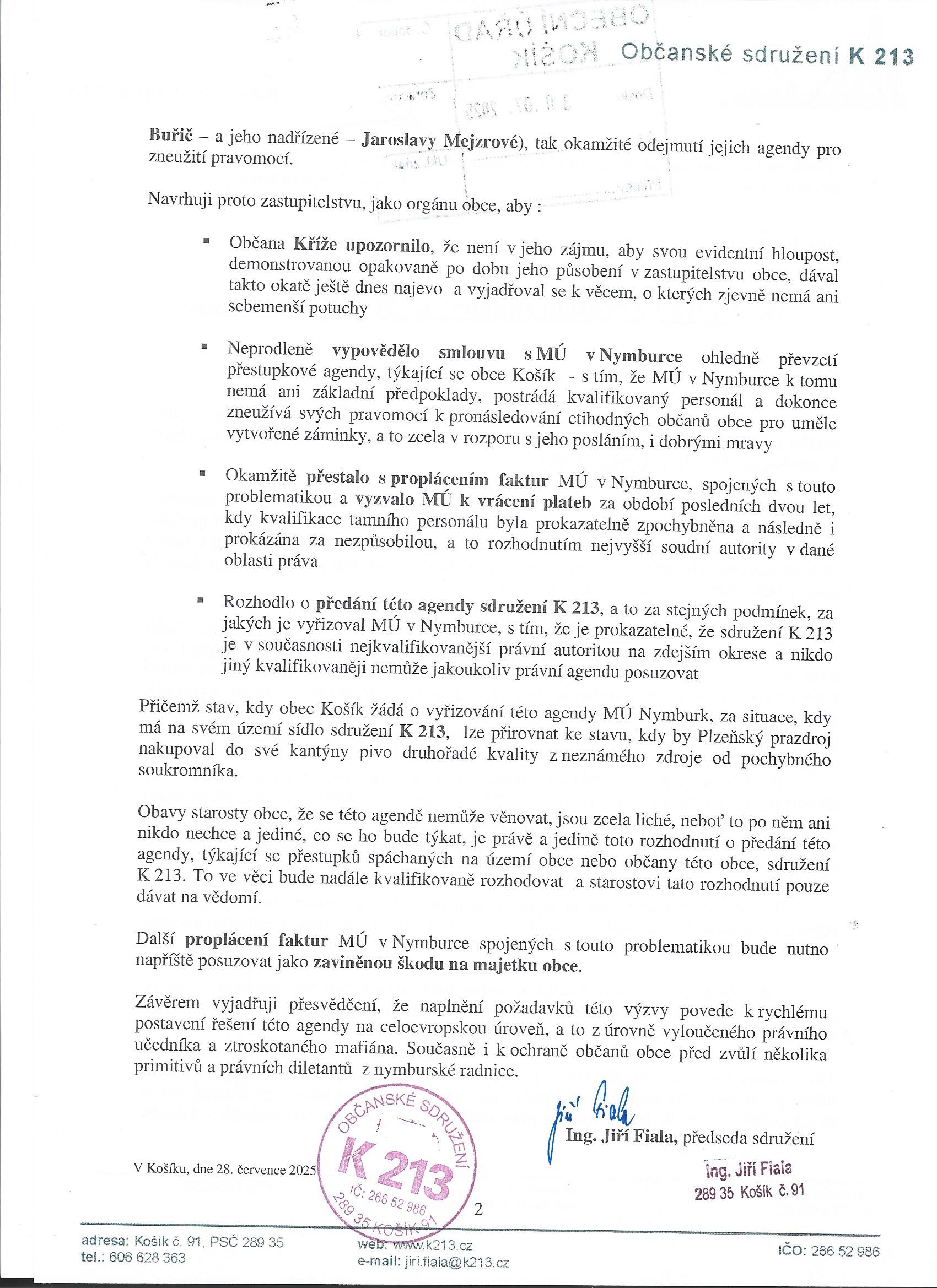 Proč by si měla obec draze platit za terorizování vlastních občanů bandou nýmandů z nymburské radnice ???